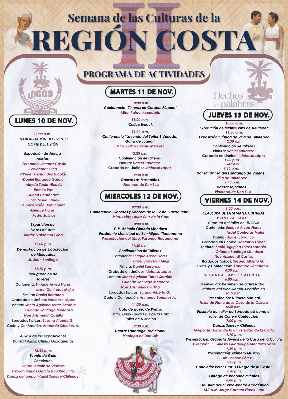 La Universidad de la Costa (UNCOS) invita a la comunidad universitaria y al público en general a participar en la II Semana de las Culturas de la Región Costa, un encuentro dedicado al arte, la tradición y el conocimiento, que rinde homenaje a las raíces oaxaqueñas y a la diversidad cultural de esta importante región del estado. 🇲🇽